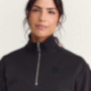 Genser med halvglidelås i myk og behagelig bomullskvalitet med børstet innside. Trendy design med høy ribbestrikket krage, ribbestrikkede mansjetter og kant. Avslappet passform.