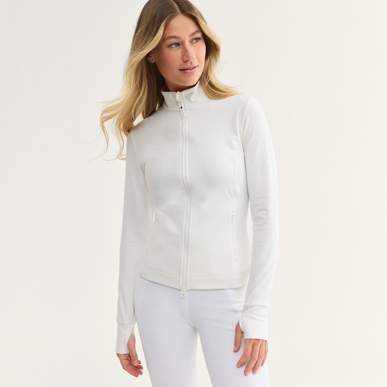 Zip-cardigan i mykt og elastisk funksjonelt materiale. Kvaliteten er fukttransporterende og hurtigtørkende og holder deg varm og tørr. Den elastiske kvaliteten gir meget god komfort og god bevegelsesfrihet. Partier med perforeringer som gir god pusteevne. Høy krage i to lag og hakebeskyttelse som gjør at genseren sitter komfortabelt og ikke gnager. Toveis glidelås og to diskrete glidelåslommer foran. Mansjetter med tommelhull. Den tettsittende passformen gjør også denne genseren perfekt til lagvis bekledning.