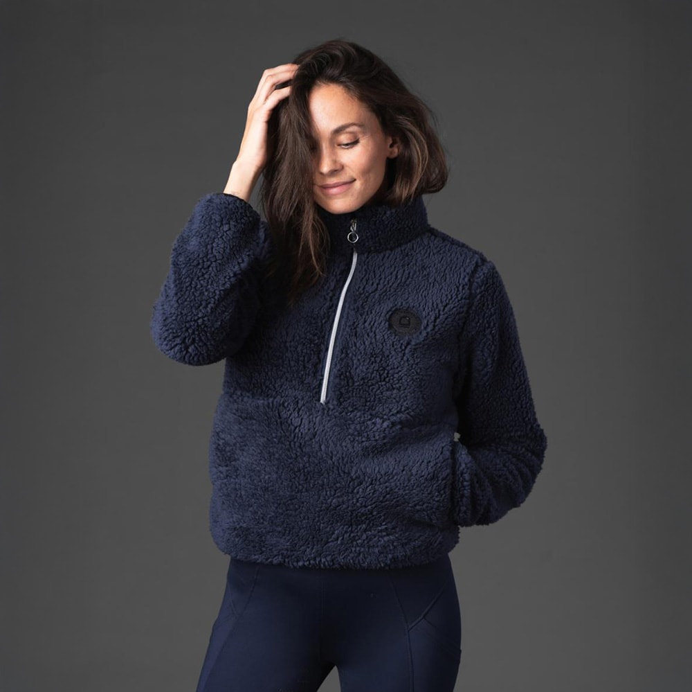 Supermyk lodden teddyfleecegenser, halvglidelås. Dekorativ vattering på skuldrene. Glidelåsen er lang, så det er mulig å trekke trøyen over hjelmen. Elastisk innforing ved nederkant, ermer og lommer.