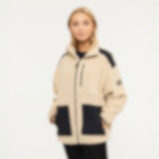 Jakke i teddypilé med høy krage. Med vatterte detaljer på skuldrene og frontlommer har jakken et moderne og trendy preg. Praktiske funksjoner inkluderer to frontlommer og en brystlomme, alle lukket med glidelås. Farfield-logoen pryder ryggen, mens en mindre logo på venstre erme gir en subtil, men stilig detalj. Elastisk bånd ved håndleddene og i nederkant. Jakken har en avslappet passform og er ideell til både hverdag og trening.