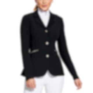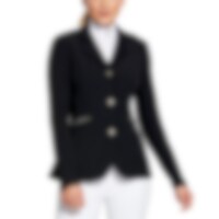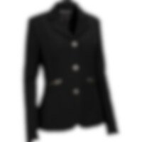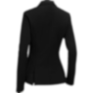 Elastisk, figursydd konkurransejakke i slitesterk nylon. Lukkes med skjult glidelås og knapper foran. To lommer med glidelås foran. Ridesplitt bak.