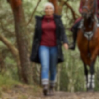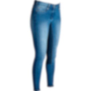 Ridebukse i elastisk denim, helforsterket med grip som gir et godt grep. Jeans med fem lommer og kontrastfargede sømmer. Innerbenslengde ca. 70 cm i størrelse 38.