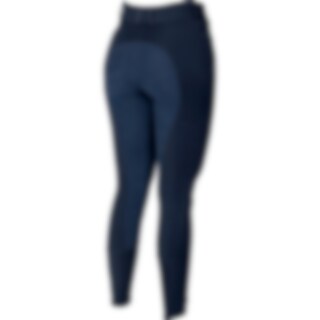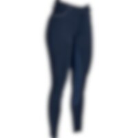 Salskåret ridebukse i resirkulert polyester, helforsterket med Daewoo. To åpne lommer foran og én mobillomme med glidelås på høyre lår. Hemper i livet og trikot ved ankler. Passepoil i kontrastfarge på hempene og lommene foran.