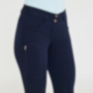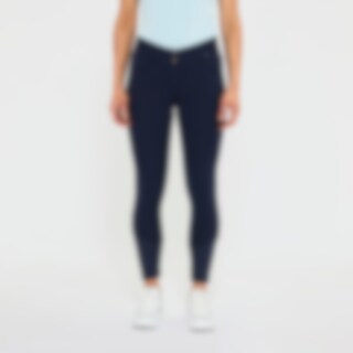 Salskåret ridebukse i økologisk bomull. Helforsterket med Daewoo som gir et godt og mykt feste i salen. Svært behagelig basisridebukse med normalhøy midje. Elastisk bånd i midjen med dobbel lukking for at ridebuksen skal sitte godt på plass og gir økt komfort og stabilitet. To åpne lommer foran og én mobillomme med glidelås på høyre lår. Elastikk ved anklene.