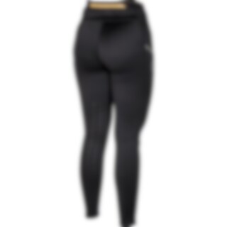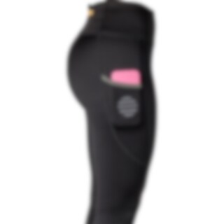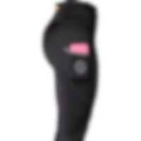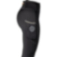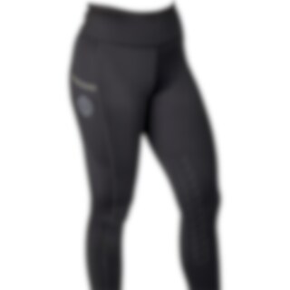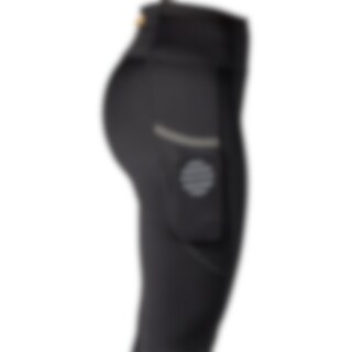 Ridetights med myk, børstet innside. Kneforsterket med grep. Mobillommer på sidene av lårene. Lomme med glidelås bak i linningen. Reflekstrykk med logotekst.