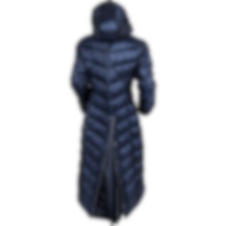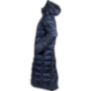 Varm vinterfrakk i elegant, figursydd modell med ekstra stoff ved håndleddene som kan brettes ned for å beskytte hendene mot regn og vind. Høy, varmende krage med glidelåsbeskytter mot haken. Ridesplitt bak og elastiske bånd på innsiden som kan festes rundt lårene for å holde frakken på plass. Tre lommer med glidelås foran. Justerbar og avtakbar hette. Frakken er impregnert med Bionic Finish Eco, en vann- og smussavvisende behandling som er mer miljøvennlig og uten tilsatte perfluorerte stoffer (PFC). Det betyr at du kan trenge å aktivere impregneringen på nytt dersom vannet på overflaten slutter å perle seg. Du trenger ingen spesialvaskemidler, men unngå derimot tøymykner fordi det hemmer funksjonen av behandlingen. Bruk Organotex ved ny impregnering.