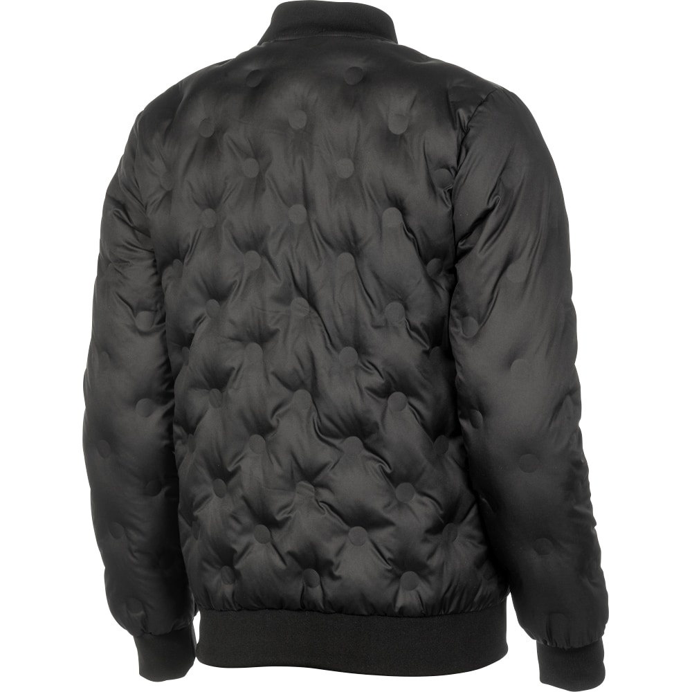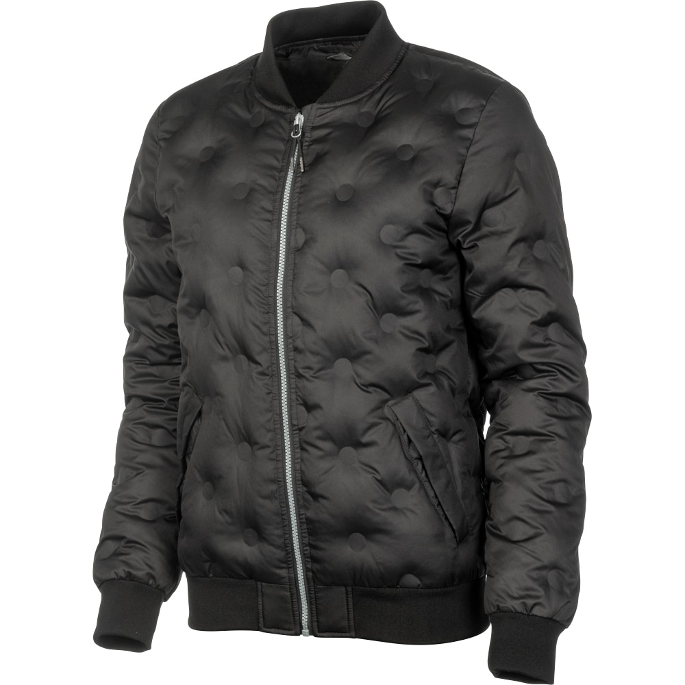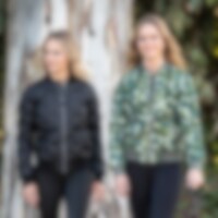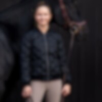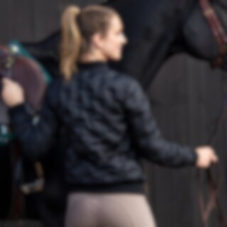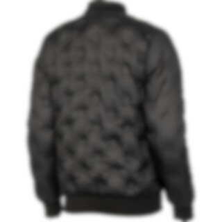 Jakke i sveiset mønster, det vil si at den er sømfri i skjøtene. To lommer foran. Ribbestrikket kant ved håndledd og i krage.