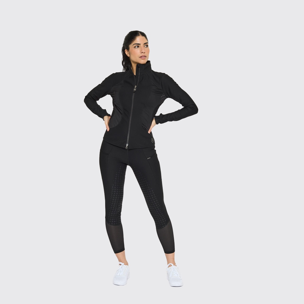 Elastisk, funksjonelt materiale som gir svært god bevegelsesfrihet, og den børstede innsiden er svært myk og behagelig å ha på seg. Elastiske nettingpartier over ryggen og på sidene gir god ventilasjon