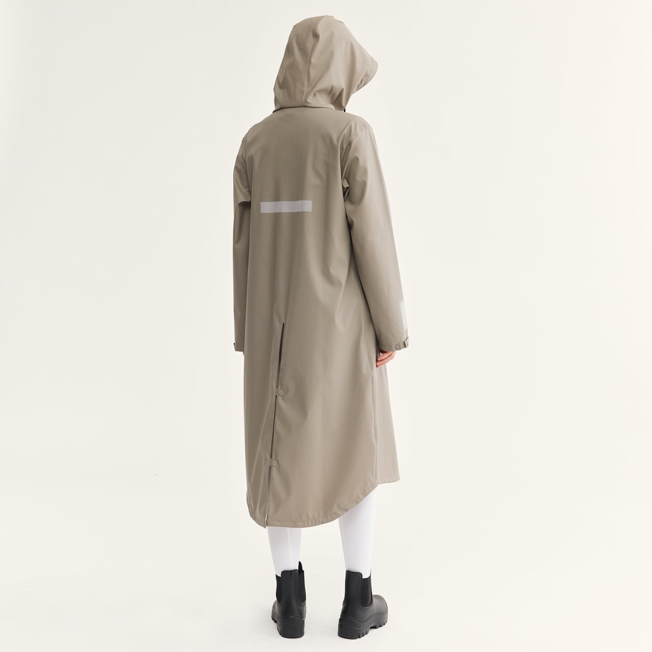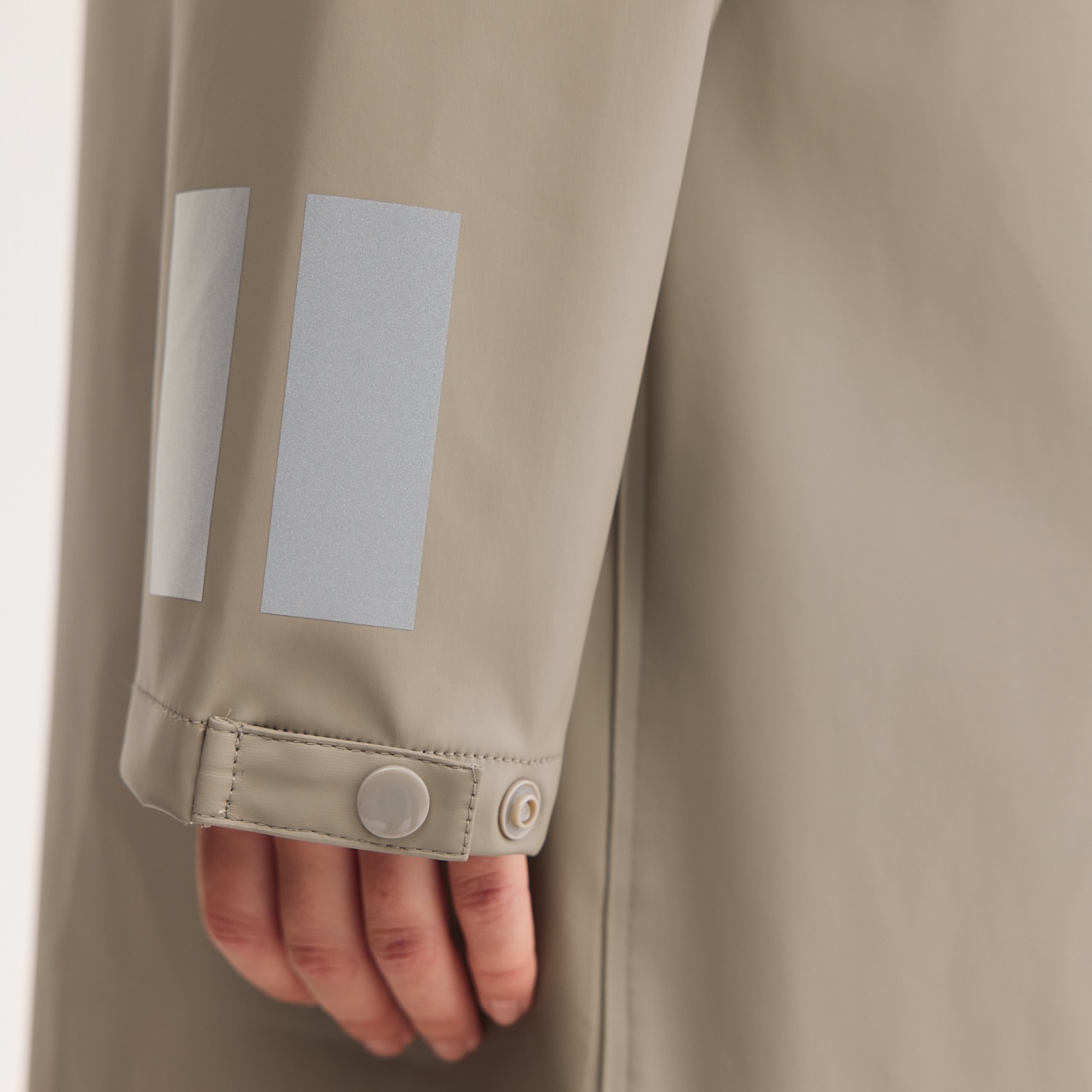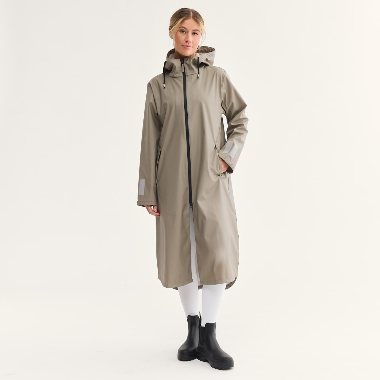 Funksjonell og vanntett regnjakke, designet for å holde deg tørr og komfortabel uansett vær. Den justerbare hetten med snøring gir ekstra beskyttelse, mens den klassiske vind- og vanntette konstruksjonen sikrer at du er utstyrt for både regn og rusk. Med sin romslige passform kan du enkelt bruke varmeplagg under jakken, noe som gjør den til et utmerket valg for langtidsbruk. Jakken har to praktiske lommer og et knelangt design som gir ekstra beskyttelse. Den lukkes enkelt med glidelås foran og har en splitt bak for økt bevegelsesfrihet. Tydelige refleksdetaljer på ermene og ryggen gir synlighet og sikkerhet i mørket.