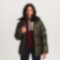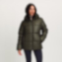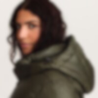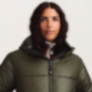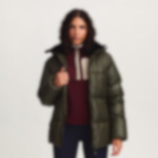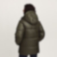 Sporty og varm vinterjakke med blank finish. Polstring laget av resirkulert polyester som har egenskaper som etterligner og gir en følelse av dun.