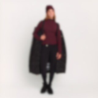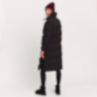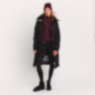 Lang, varmfôret frakk med høy, fleecefôret krage. Sjenerøs passform. Polstringen laget av resirkulert polyester har egenskaper som etterligner og gir en følelse av dun. Store lommer med klaff og trykknapper foran. Innerlomme med glidelås. Praktiske funksj