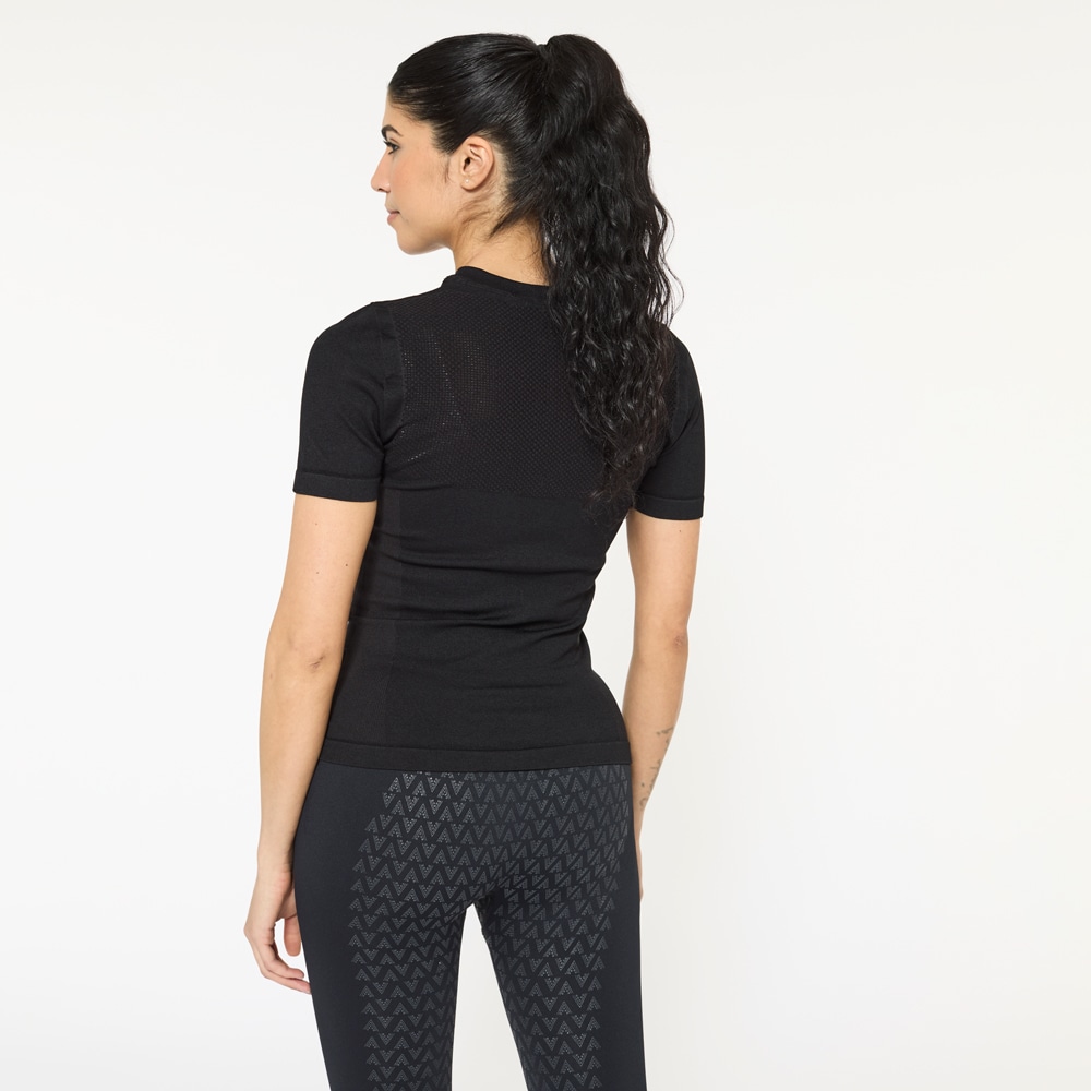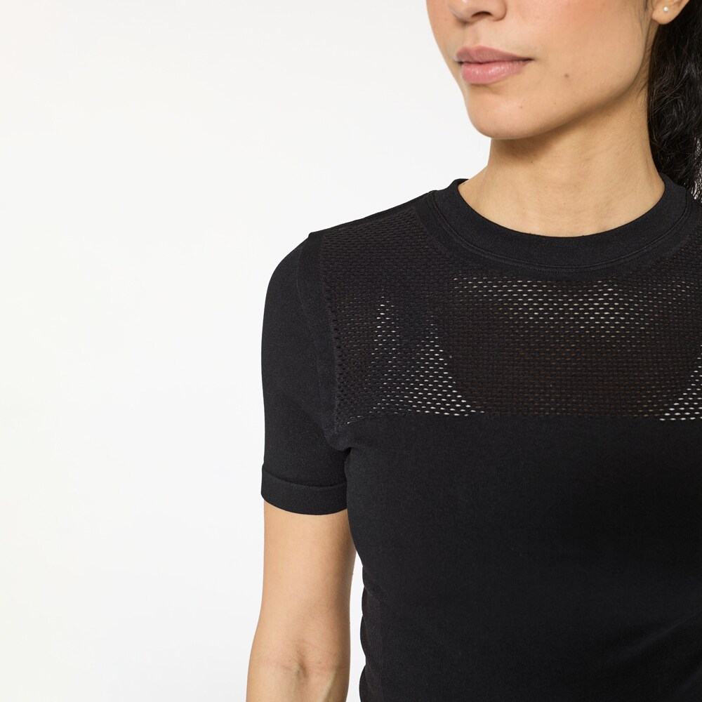 Sømløs T-skjorte i et sømløst, mykt og elastisk funksjonsstoff. Ribbestrukturer som følger kroppens form og gir en flatterende silhuett. Stoffet har god pusteevne og er hurtigtørkende. Perforeringer foran og bak på ryggen gir god ventilasjon.