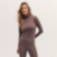 Langermet funksjonell topp i figurnær passform. Myk og elastisk kvalitet som gir god bevegelighet og komfort. Den børstede innsiden gjør plagget veldig mykt og behagelig mot huden. Stående krage med dekorativ rynke og glidelåsåpning foran.
