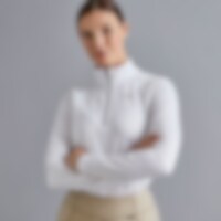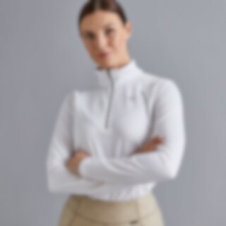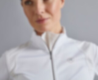 Langermet funksjonstopp i tettsittende passform. Børstet innside som gjør plagget mykt og behagelig mot kroppen. Krage med glidelås. Nettingdetaljer med glitter foran på skulderen og på glidelåsen ved kragen. JH-logo med strassteiner på brystet.