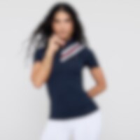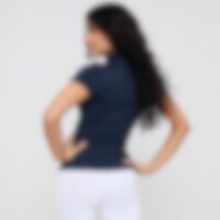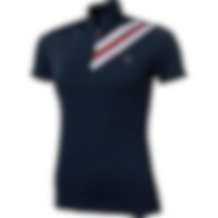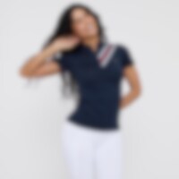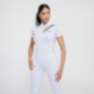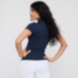 Kortermet topp i mykt og elastisk funksjonsmateriale. Funksjonell design med tettsittende passform. Stående krage som gjør at toppen egner seg både til trening og stevner. Stripene over skulderen gir en sporty stil. Skjult glidelås foran.