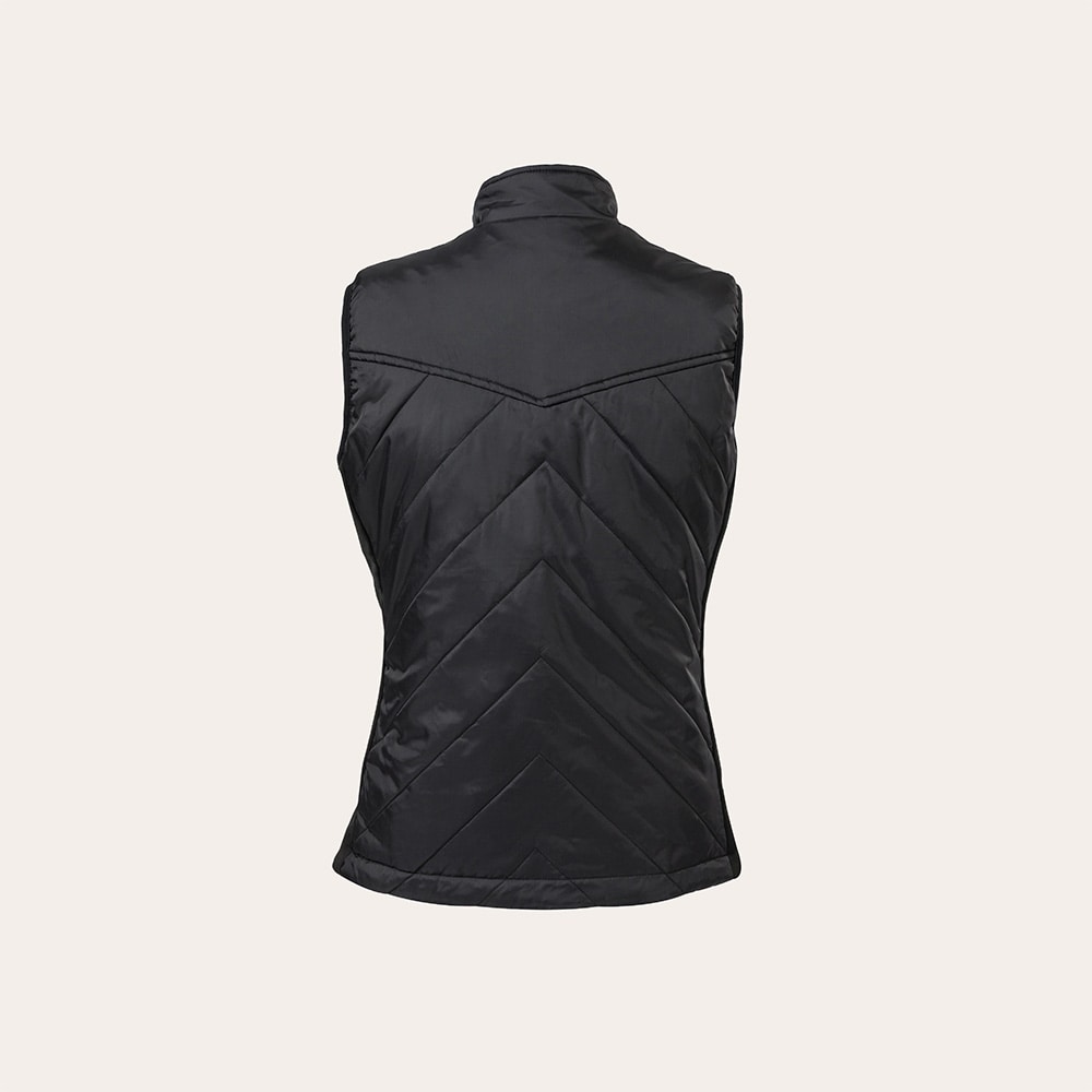 Etna er en lett polstret varmevest med et innebygd elektrisk varmesystem som drives av en hvilken som helst powerbank. Figursydd passform, hoftelengde, stretchpaneler i sidene og sidelommer foran med glidelås. Ved å trykke på knappen med Back on Track-logoen - som er plassert foran på plagget - aktiveres det elektriske varmesystemet som umiddelbart omfavner kroppen med behagelig varme. Innstillingene lar deg velge, eller veksle, mellom tre varmenivåer; lav (45 °C), middels (50 °C) eller høy (55 °C). Vesten er helfôret med Welltex®️-teknologi, noe som gir den en annen fordel: effekten av reflektert infrarød energi - både fra din egen kroppsvarme og fra varmen som genereres av det elektriske varmesystemet. Et perfekt plagg i kjølig vær eller når du tar en pause og trenger å holde varmen. Produktet er stort i størrelsen, noe som gjør det mulig å bruke en tykkere genser under. Hvis du derimot vil bruke den over bare et tynt lag med klær og nær kroppen, gå ned en størrelse. OBS! Powerbank er ikke inkludert.