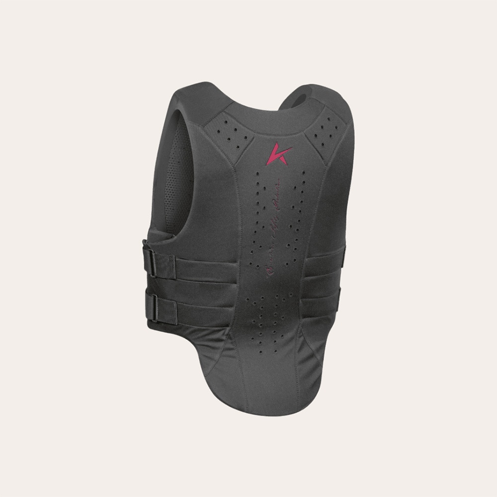 Sikkerhetsvest designet for ryttere med høye krav til passform og maksimal beskyttelse. Slank modell med god komfort takket være mykt og fleksibelt skumsystem. Glidelås midt foran som automatisk justerer vestens vidde når den er lukket. Ultra Vario er ekstra fleksibel takket være borrelås i siden for maksimal justering. EN 13158:2009 - Level 3. 360 graders beskyttelse. Fem lag med ergonomisk konstruksjon gjør at vesten følger kroppsformen. Perforering av hvert lag gjør at den puster. Når vesten varmes opp av kroppsvarmen, former den seg etter kroppen. Østerriksk design. Lett å stelle og vaske.