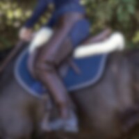Helchaps, ettersittende modell i myk nappa. Strikk langs hele glidelåsen. Justerbart belte foran og bak.