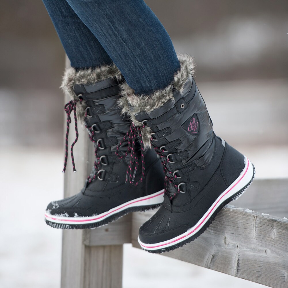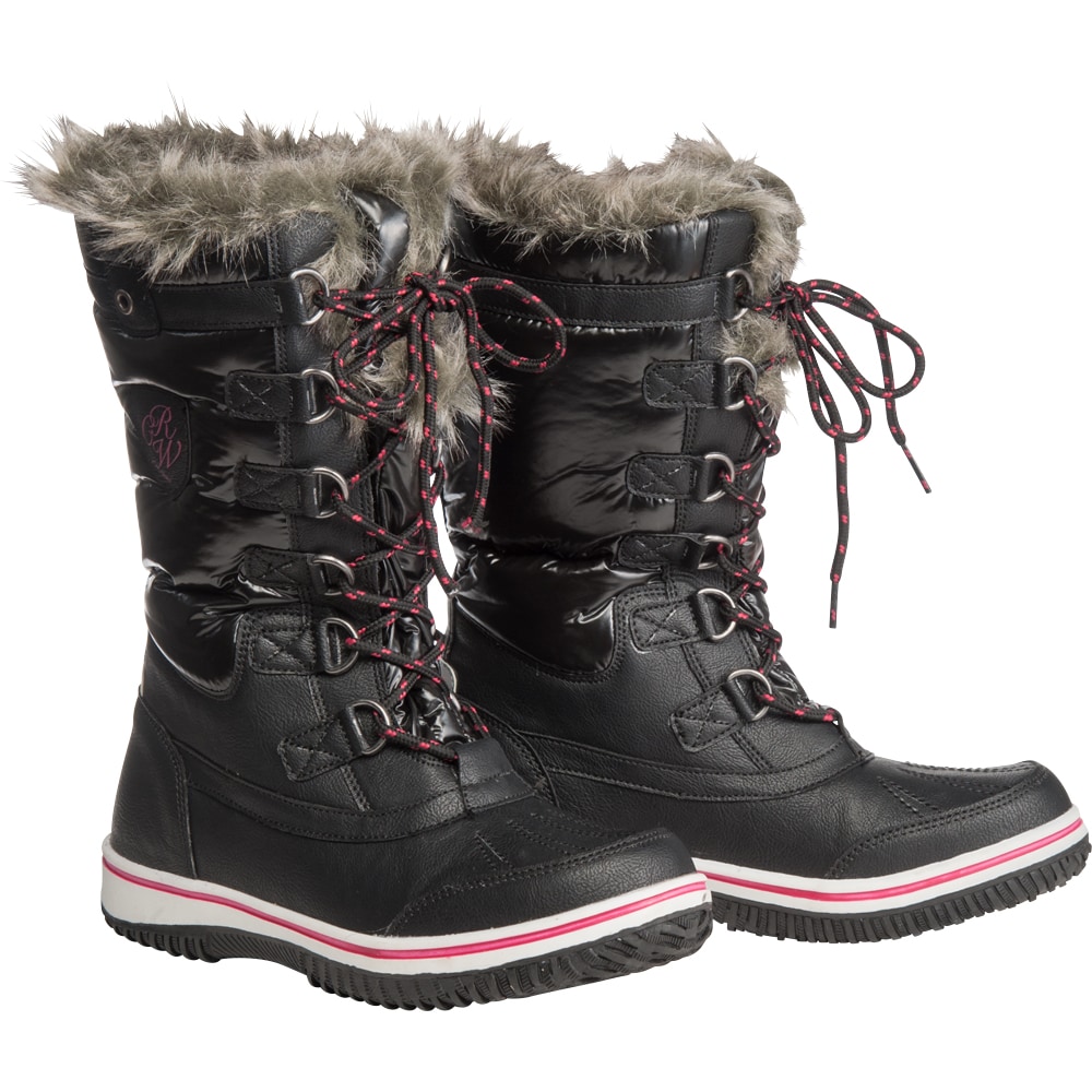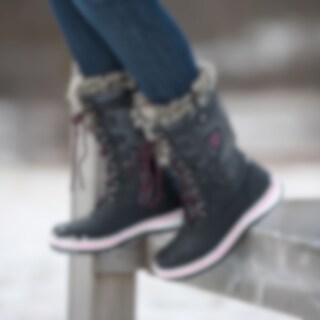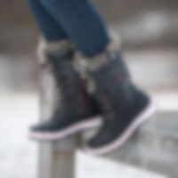 Støvel i syntet med varmende fôr. Snøring foran og riflet gummisåle som gir et godt grep.