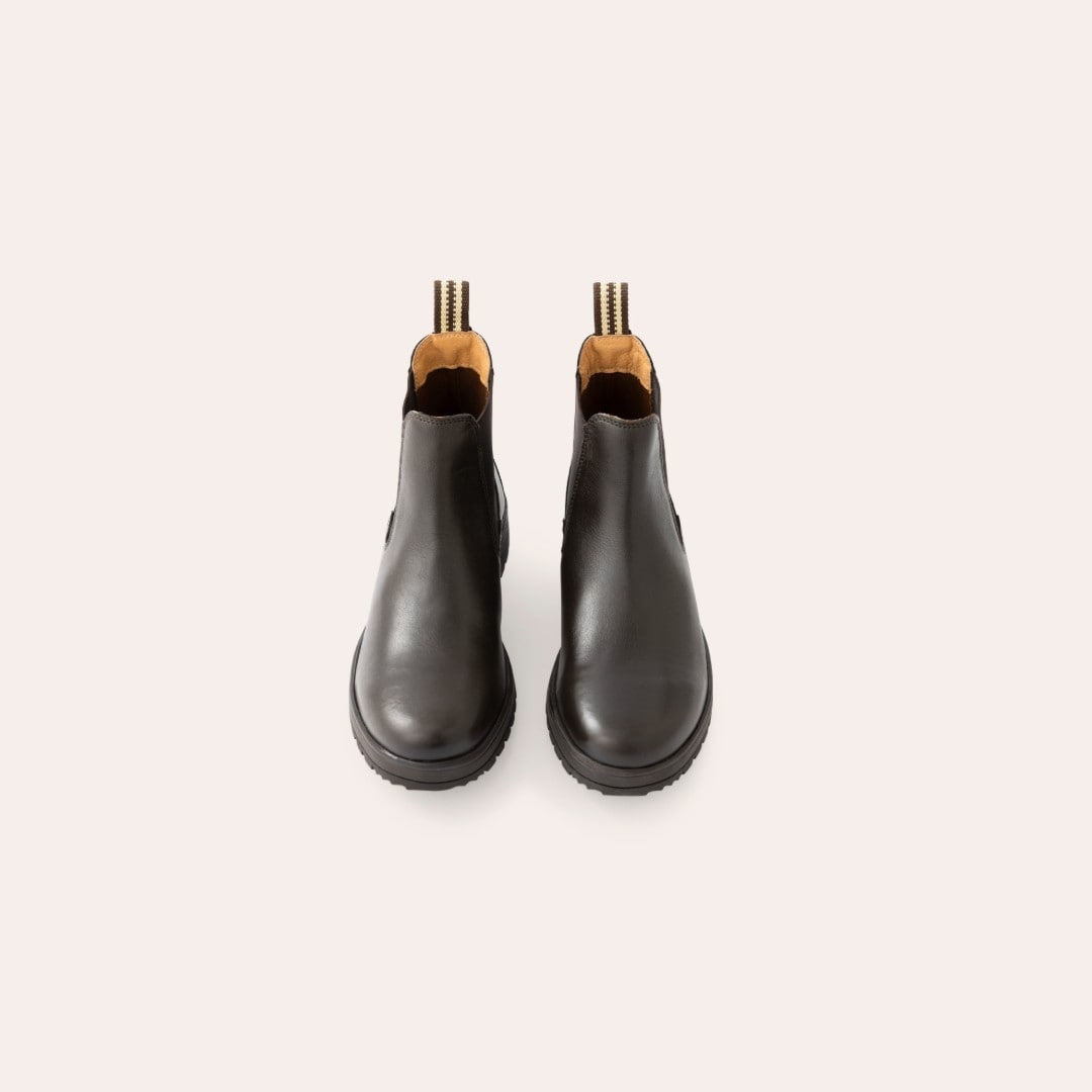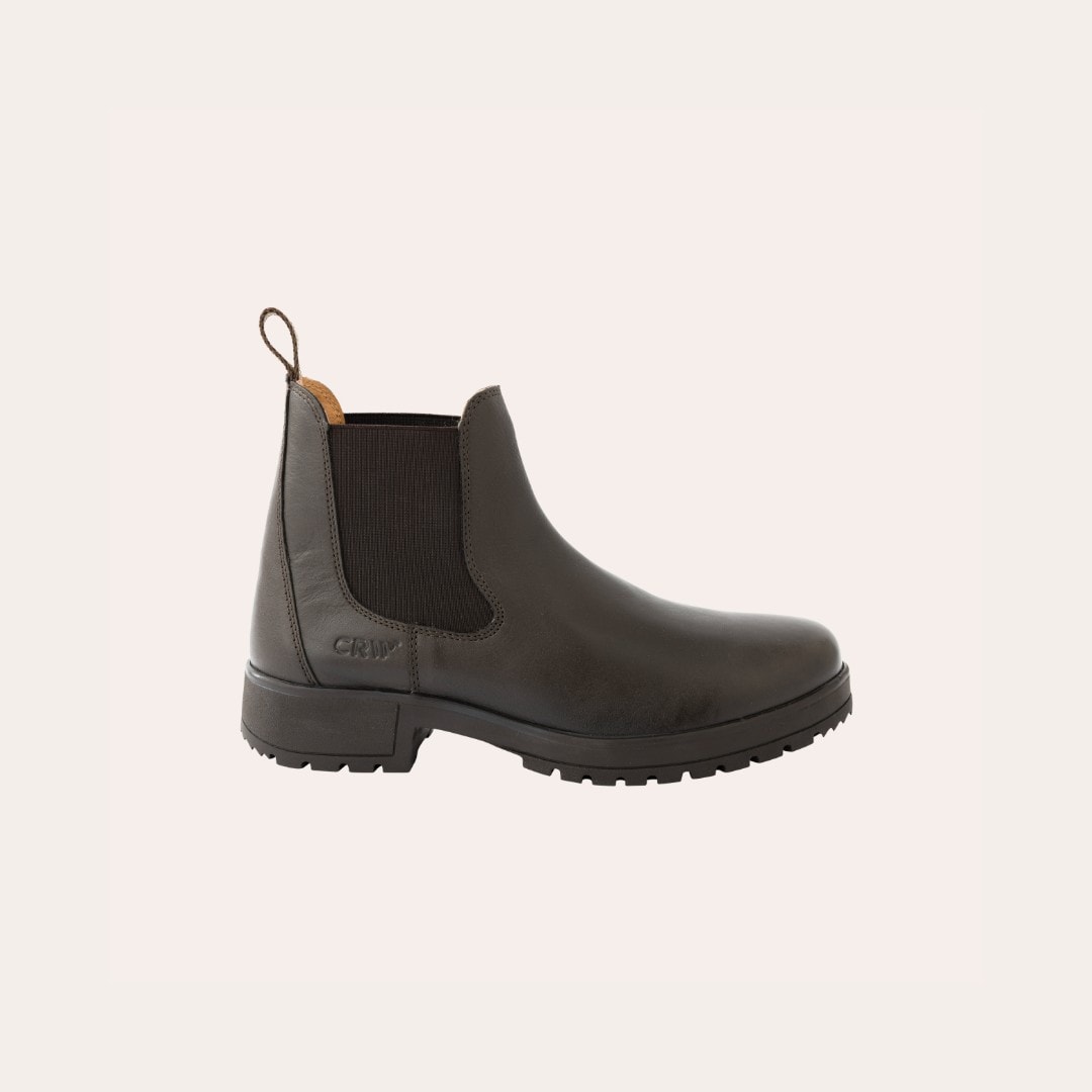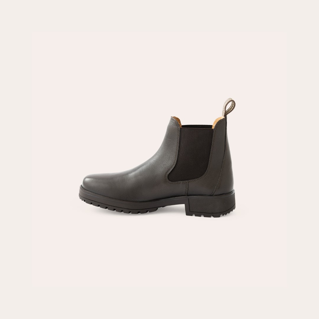 Jodhpur-støvler i mykt skinn med elastiske sider, tekstilfôr og grov gummisåle.