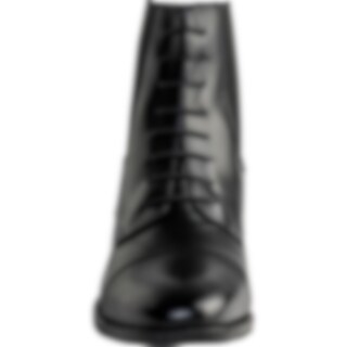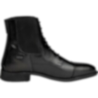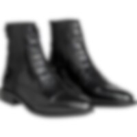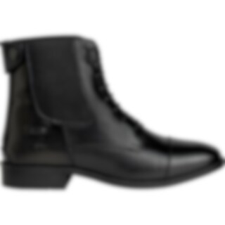Jodhpurs i skinn med elastisk snøring og glidelås bak. Strikk i siden, fôret med cambrelle. Gummisåler.