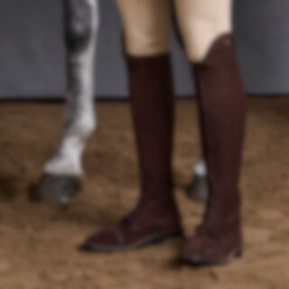 Mokkastøvel med glidelås som kan åpnes helt foran, noe som gjør den enklere å ta på. Lærforsterkning på innsiden, og kledd strikk på innsiden av glidelåsen. Mokka er et følsomt materiale, derfor bør støvelen kun brukes til ridning.
