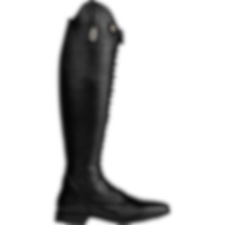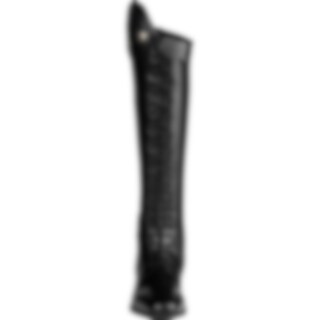 Ridestøvel i mykt og elastisk, vegansk syntetmateriale med elastisk snøring hele veien foran. Glidelås foran på innsiden av snøringen, strikk bak.