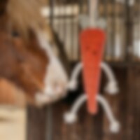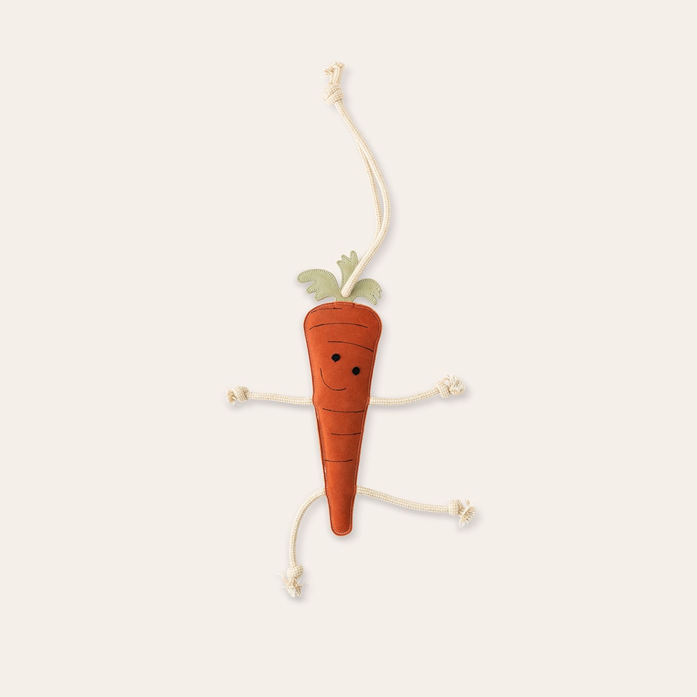 Boksleketøy i slitesterkt, mykt polstret semsket skinn formet som en gulrot. Lett å feste i boksen. Ca. 48 x 14 cm.