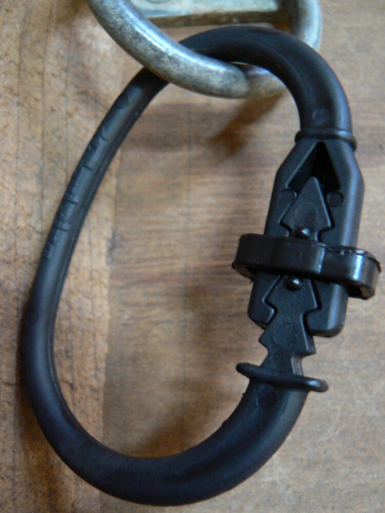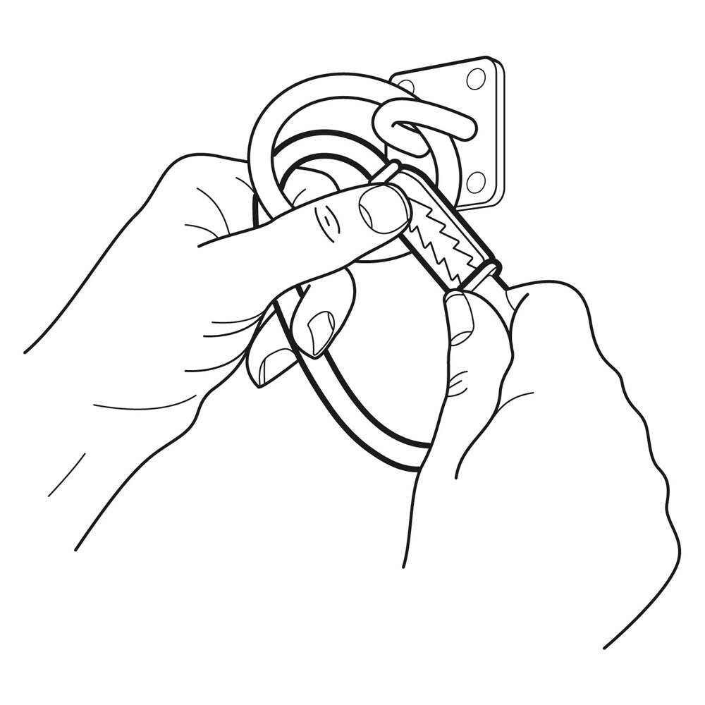 Fest Equi-Ping i f.eks. metallringen i stallgangen, boksen, spylespilten eller transporten, fest deretter leietauet i Equi-Ping. Hvis hesten din får panikk og kaster seg, åpnes Equi-Ping.